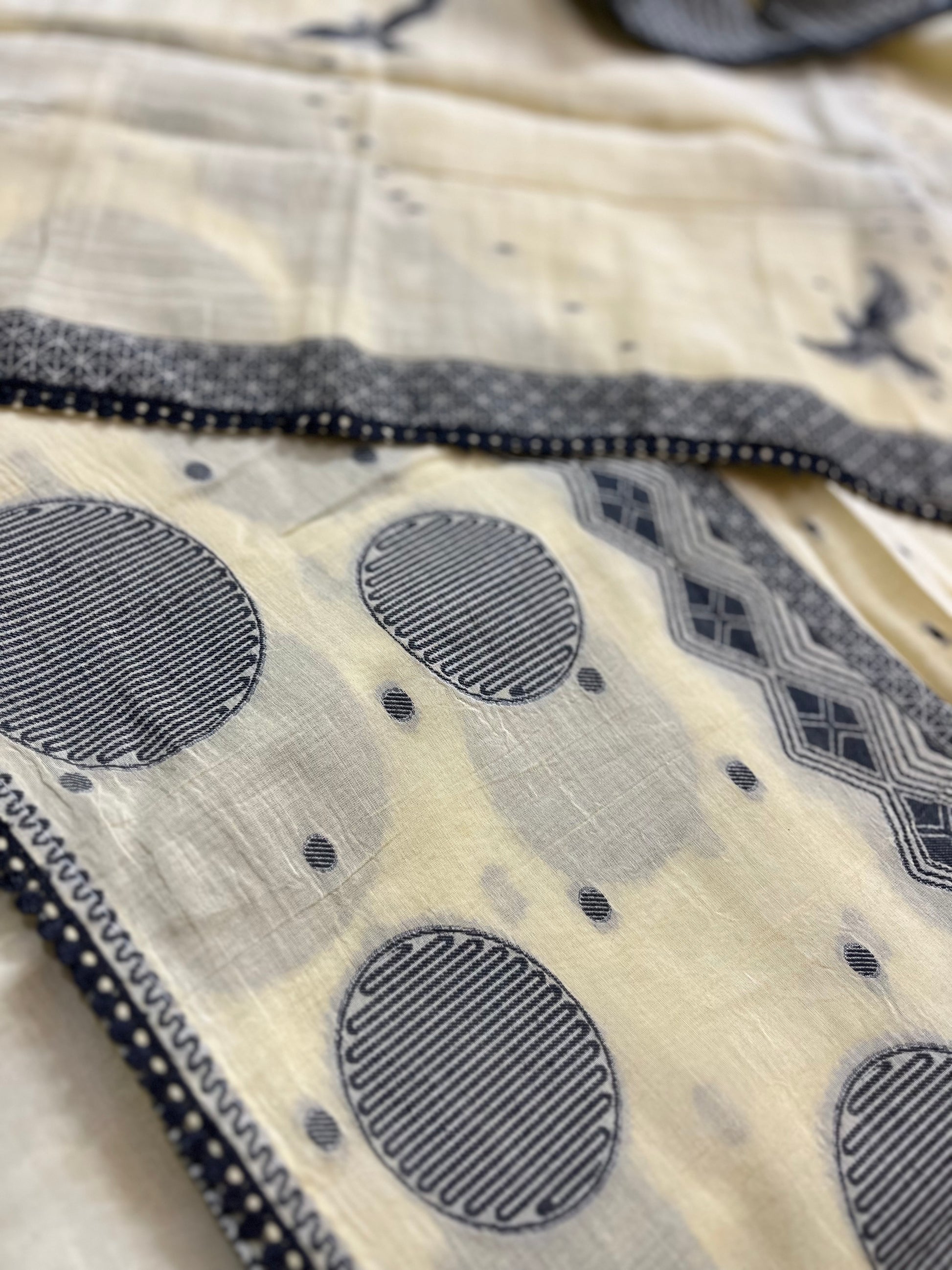 Exquisite Jamdani Mul Chanderi Unstitched Ladies Suit featuring: